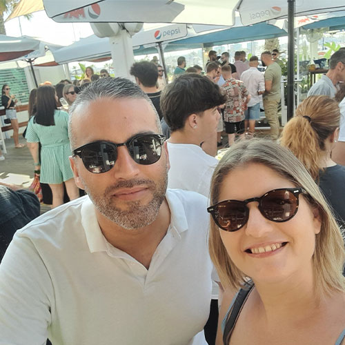 Nos conocimos en las fiestas del pueblo, en octubre de 2018. Fue en casa del Maki (El Pintao para muchos). Yo vine a su casa con Antonio (un amigo en común) y Mada, su pareja… aunque por entonces, aún no sabíamos cuántas cosas teníamos en común. Mientras yo miraba las fiestas desde el balcón, Alejandro se acercó a hablar conmigo. Estuvimos charlando un buen rato, entre risas, copas de vino (o dos), y antes de que la noche terminara, decidí pedirle su número. Días después empezamos a hablar… y desde entonces, no hemos parado.